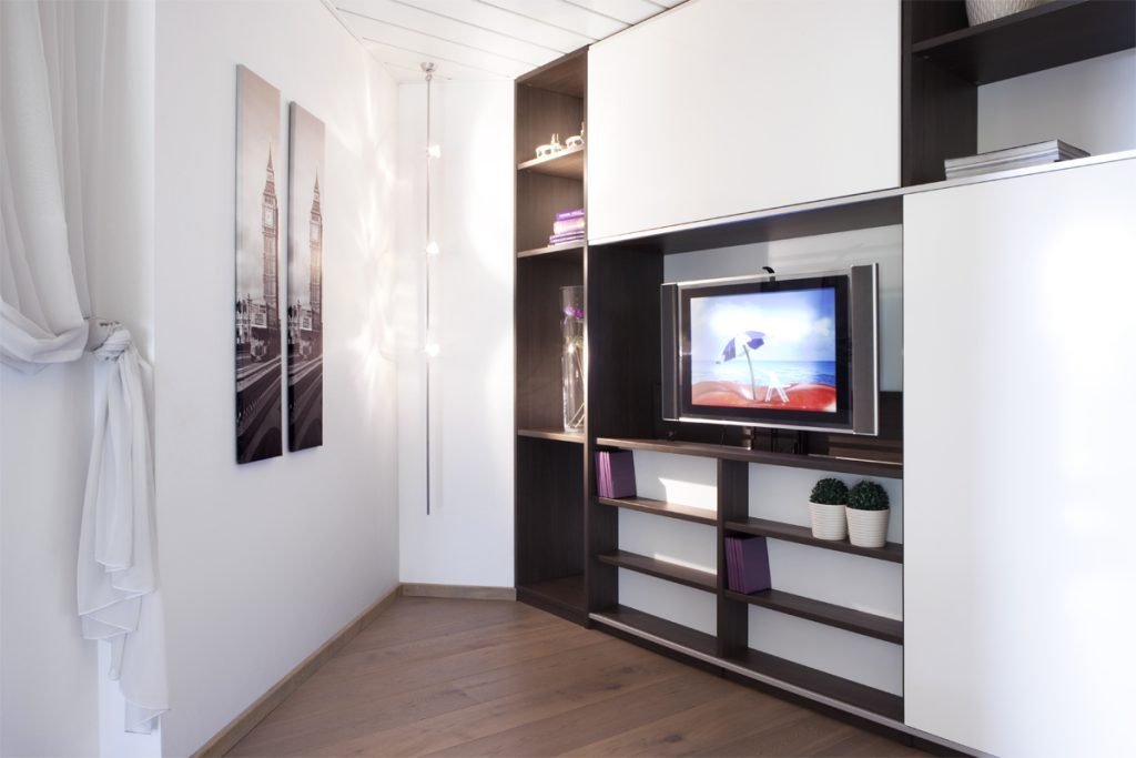 Wist u dat voor een meubel op maat voor in de woonkamer de boekenkast als basis kan dienen?. Met een meer open karakter en voorzien van in diepte verspringende elementen wordt het al snel een speelse wand. Uw TV/audio mooi ingebouwd en de draden netjes weggewerkt. De TV hangend aan de wand of juist aan een decoratief paneel. Zelfs een TV-lift behoort tot de mogelijkheden. Apparatuur en spelcomputers, alles vindt een vaste plaats in het zicht of juist mooi opgeborgen achter deuren, kleppen, schuifpanelen.